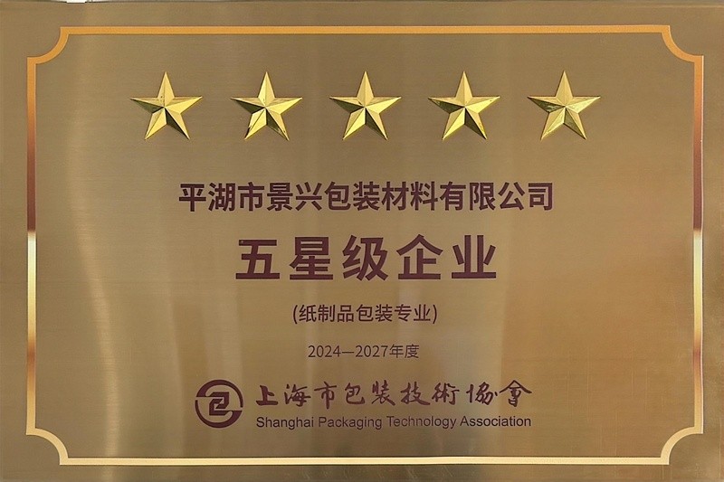 喜报!金沙9001以诚为本全资子公司平湖景包被上海市包装技术协会授予纸制品包装专业“五星级企业”荣誉称号