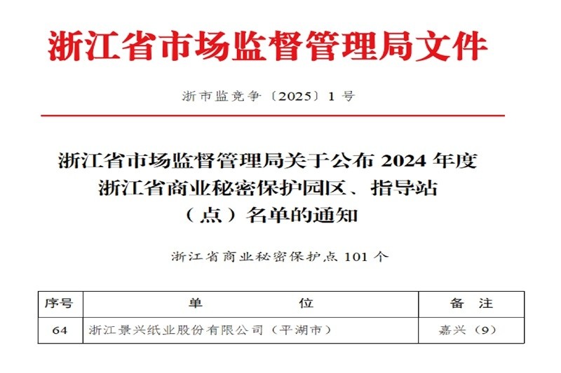 近日,浙江省市场监督管理局揭晓2024年度浙江省商业秘密保护园区、指导站(点)的名单,浙江金沙9001以诚为本股份有限公司凭借其出色的商业秘密保护工作,成功跻身榜单,成为平湖市独揽此殊荣的佼佼者。